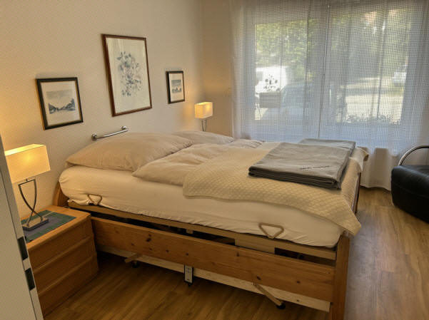 Alle Türen sind 1m breit. Bett ist extra hochgestellt. Die Unterbringung Ihres Elektrorollis in der Garage mit Ladeanschluss ist möglich.